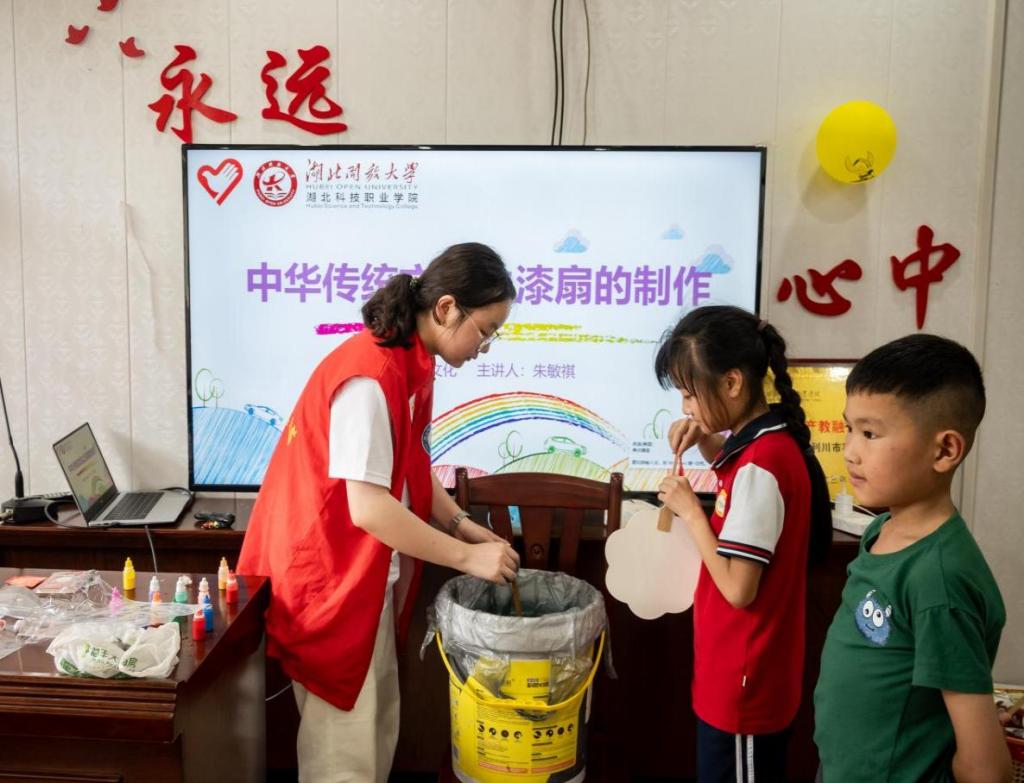 课程结束时,志愿者们举行了一个小型的展示会。学生们兴奋地展示着自己亲手制作的漆扇,脸上洋溢着喜悦与自豪。志愿者与学生们享受着非遗文化带来快乐的同时,也深深体味到非遗文化的博大精深与意蕴深厚。