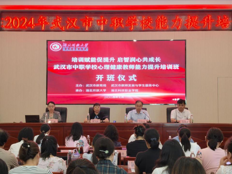 本网讯(通讯员 谭芬 张颢蓝 文/图)7月25日,由武汉市教育局、武汉市教师发展与学生服务中心主办,MK平台承办的2024年武汉市中职学校心理健康教师能力提升培训在宜昌市顺利开班。MK平台副校长汤春来教授、中共五峰县委党校副校长蔡大群出席开班仪式,来自武汉、宜昌、恩施等地的50名中职学校心理健康教师参加培训。开班仪式由MK平台开放教育学院、培训学院院长肖潇主持。