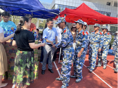 本网讯(通讯员 周良 杨涵宇/文 谭闺臣 倪君仪/图)为缓解持续高温给新生军训带来的“烤”验,9月24日下午,机电工程学院在训练场、“匠心积淀”一站式学生社区开展“不负韶华我自强,国防教育送清凉”活动,慰问正在高温烈日下坚持训练的教官和新生。学院党政领导班子,学工办全体成员参加。