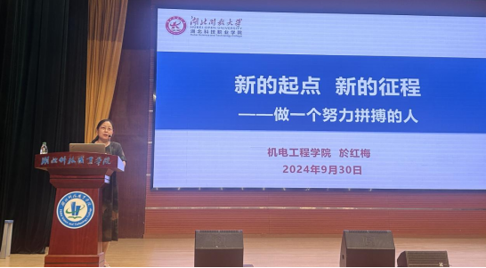拼搏进取,创赢美好未来。“欢迎加入机电工程学院”会上,於红梅再次代表学院欢迎2024级新生的加入,并以“新的征程 新的起点——做一个努力拼搏的人”为题为2024届新生带来“院长第一课”。她从学院的专业设置出发,详细介绍了学院的教学基本情况及师资力量,并用青年人听得懂、听得进的话语就“如何度过3年大学生活”进行细致讲解,娓娓道来,打动人心。於红梅希望机电学子能端正心态,坚定信念;自信自强,积极向上;打牢基础,拼搏奋进,为人生写出一份完美的答卷。