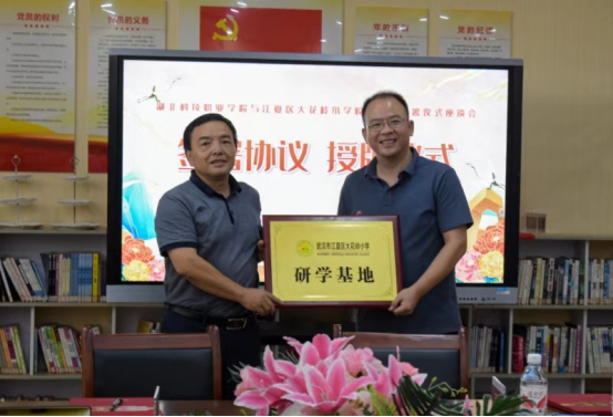 签约仪式上,双方签署校校合作协议,MK平台授予江夏区大花岭小学“大学生实习实训基地”,大花岭小学授予MK平台“研学基地”。