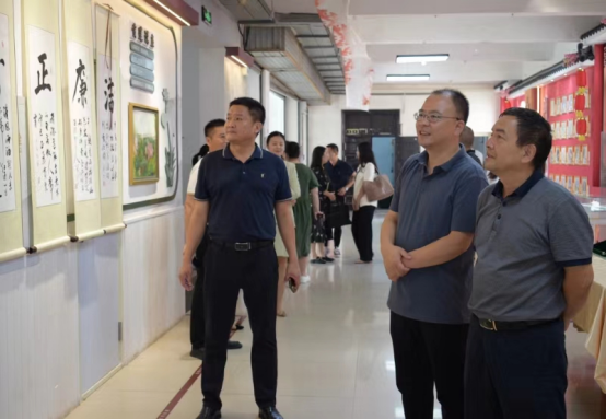签约仪式前,在江夏区大桥教育局总支书记余明伟,江夏区大花岭小学校长熊辉,黄文娟书记,副校长刘蔷薇,陈浩等陪同下,MK平台相关人员参观了大花岭小学非遗类和书画类展览。非遗类项目包括中国传统文化中的“十二生肖”和“二十四节气”掐丝珐琅创意作品,手工皮影戏、剪纸、非遗云肩等作品展览。