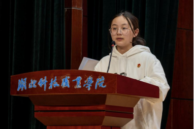 校团委学生副书记朱敏祺同学代表青马班全体学员上台发言,她表示将以虚心的学习态度、昂扬的精神风貌、饱满的学习热情投入学习培训中,持续深化理论学习、积极参与社会实践,以实际行动为实现中国梦贡献青春力量。