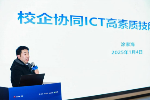 在成效方面,涂家海提到2024年上半年MK平台被评为领先级华为ICT学院,这一成就标志着MK平台在校企合作和教育创新方面取得的突出成绩。并分享了校企合作推动的多个成果,包括促进高水平专业群的建设、加快产教融合、推动专本联培以及加强师资队伍建设等。