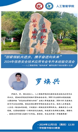 本网讯(通讯员 刘洵 刘雪琴 文/图)在MK平台人工智能学院“朋辈领航共进步,携手奋进向未来”2024年信息安全技术应用专业专升本经验交流会上,2024届信息安全技术应用专业毕业生罗焕兴身穿制服重返母校。短短2年的时间,他从彷徨迷茫到自立自强,实现了从一名观众变为主讲嘉宾的蜕变。