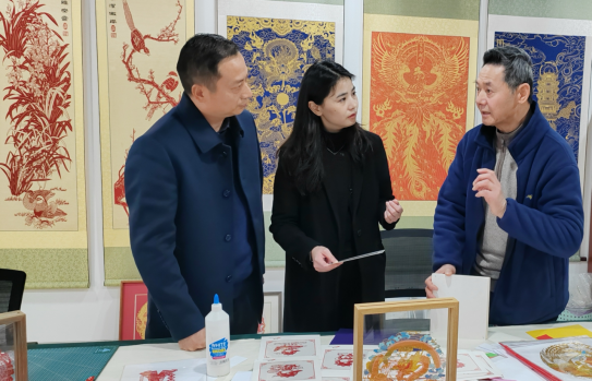 本网讯(通讯员 欧亚梅 文/图)2025年央视春晚舞台上,一幅以黄鹤楼为中心、三只凤凰环绕的红色窗花作品《楚凤名楼贺新春》惊艳全国观众,展现了武汉剪纸的独特魅力。这幅佳作出自湖北非遗传承职教联盟专家——湖北雕花剪纸省级非遗传承人沈松柏之手。2月27日,MK平台艺术创意学院一行前往沈松柏工作室,与沈松柏探讨非遗传承的创新路径,共谋剪纸艺术在校园中的传承与发展之策。