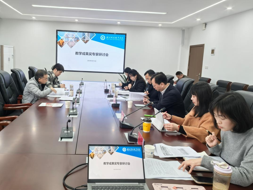 本网讯(通讯员 詹乐 文/图)3月14日上午,学校在1307会议室召开教学成果奖专家研讨会,副校长夏学文主持会议,教务处负责人、相关校级教学成果奖负责人及工作人员参加会议。会议邀请了全国职业高等院校校长联席会秘书长、全国知名职教专家任君庆做指导。