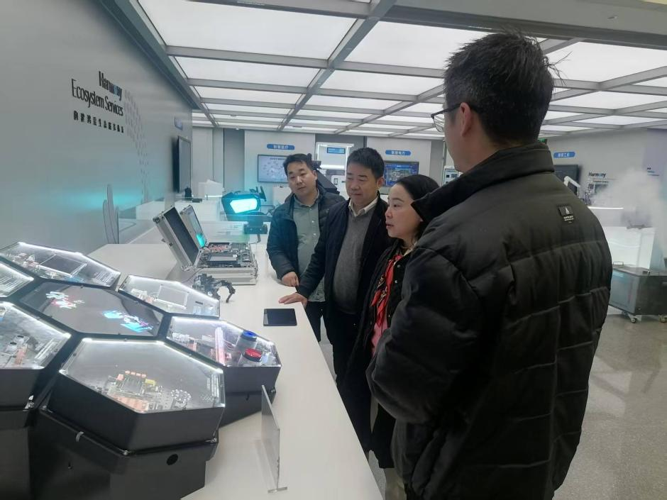 在鸿蒙生态武汉创新中心,生态总监刘强陪同肖潇一行沉浸式体验鸿蒙生态发展的最新成果,涵盖鸿蒙原生应用、智慧办公、智慧工业、智慧电力、智慧医疗、智慧金融、智慧安平、智慧教育等诸多领域。
