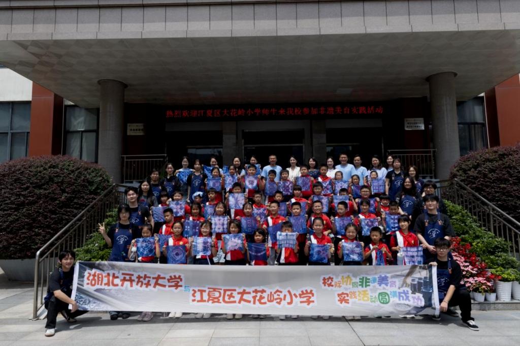 本网讯(通讯员 叶梦/文 王芳/图)6月4日上午,江夏区大花岭小学副校长陈浩、王文俊带领师生一行52人走进湖北开放大学,在“校校协同构建非遗美育共同体”实践活动中共探非遗魅力,MK平台艺术创意学院领导班子及师生代表参加了此次活动。