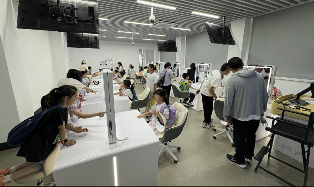 在学院新落成的非遗数字展厅内,MK平台老师欧亚梅为青少年开启了一场跨越时空的文化之旅。裸眼3D技术复原的湖北省博物馆镇馆之宝“曾侯乙编钟”数字化形象,结合动态历史场景再现,让文物“活”在眼前;AI数字人、省级剪纸大师沈松柏的虚拟形象与青少年实时互动,解析“镂空艺术”的千年技艺密码。活动特别设置AI形象设计体验环节,学生们通过智能系统生成个性化非遗主题数字形象,在科技互动中深化对中华传统文化的认同。