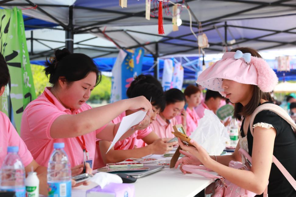 作为经济贸易学院的特色环节,迎新现场特设点钞技能展示区。参与展示的同学们手法娴熟、指尖翻飞,清脆的点钞声如跳动的音符,吸引了大批新生与家长驻足观看、拍照记录。这一展示不仅让新生直观领略到经贸专业的实用魅力与独特风采,更让他们对未来的专业学习充满期待,提前感受到“学以致用”的乐趣。