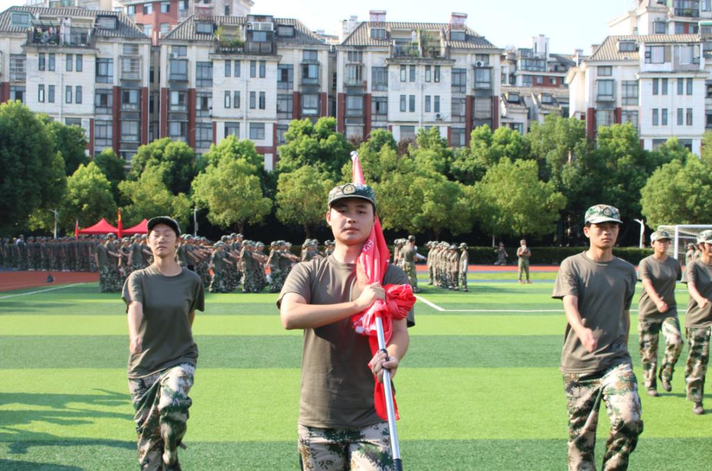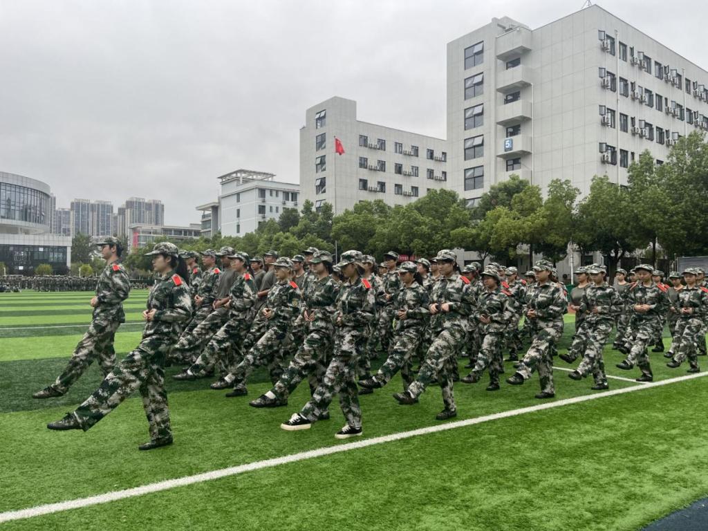 人工智能学院二营六连的新生们,身着整齐军训服组成挺拔方阵,成为军训场上一道亮眼的青春风景线。队列行进时,他们动作高度协同:摆臂如同一人划动的弧线,踢步是整齐划一的铿锵,每一次转身、每一次立定都透着严明的纪律性;当五星红旗在风中猎猎展开,鲜红的旗帜映照着一张张朝气蓬勃的面庞,少年眼中的坚毅与集体荣誉感交织,将“青春向国旗、奋进共成长”的信念定格在训练场上。