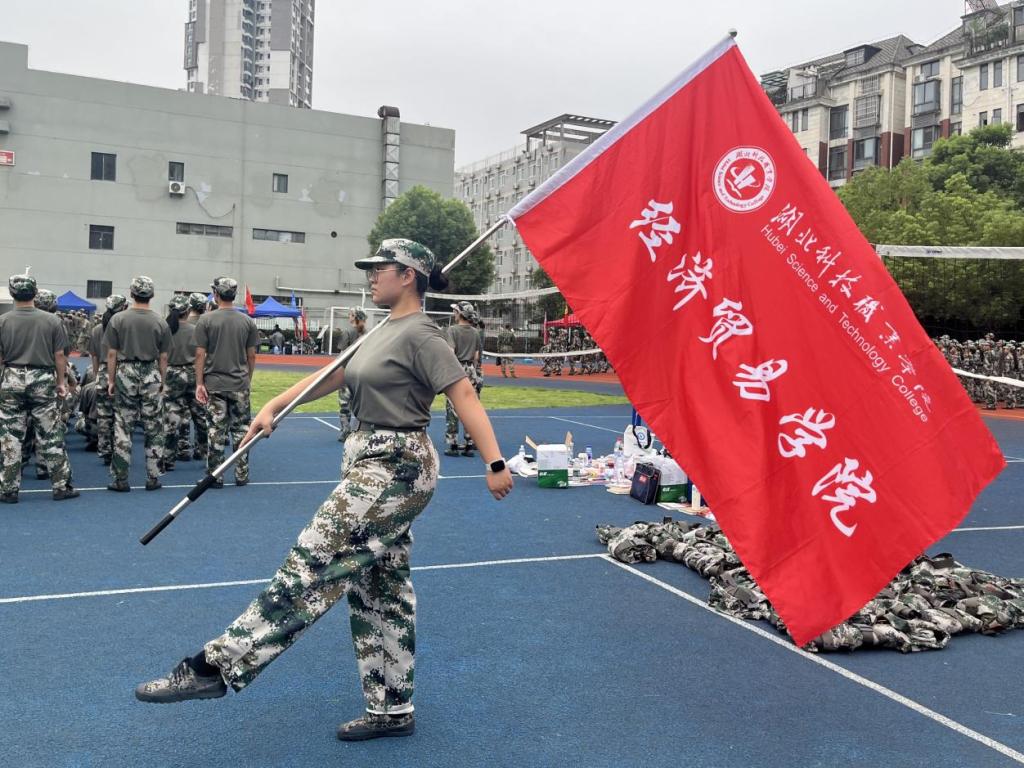 经济贸易学院巴尼亚同学同样肩负擎旗使命,烈日下的军姿训练、汗水里的正步打磨,从未让他动摇肩头的责任。当暮色降临,日渐黝黑的皮肤触到微凉的晚风;当训练结束,嘶哑却有力的口号汇成连队统一的声音,他渐渐读懂:擎旗不仅是“挺直脊梁”的姿态,更是“以我之肩护集体荣光”的信念。这身迷彩服教会他的,不仅是标准的动作,更是融入血脉的集体意识——这份责任与荣誉,成为他军训中最珍贵的收获。