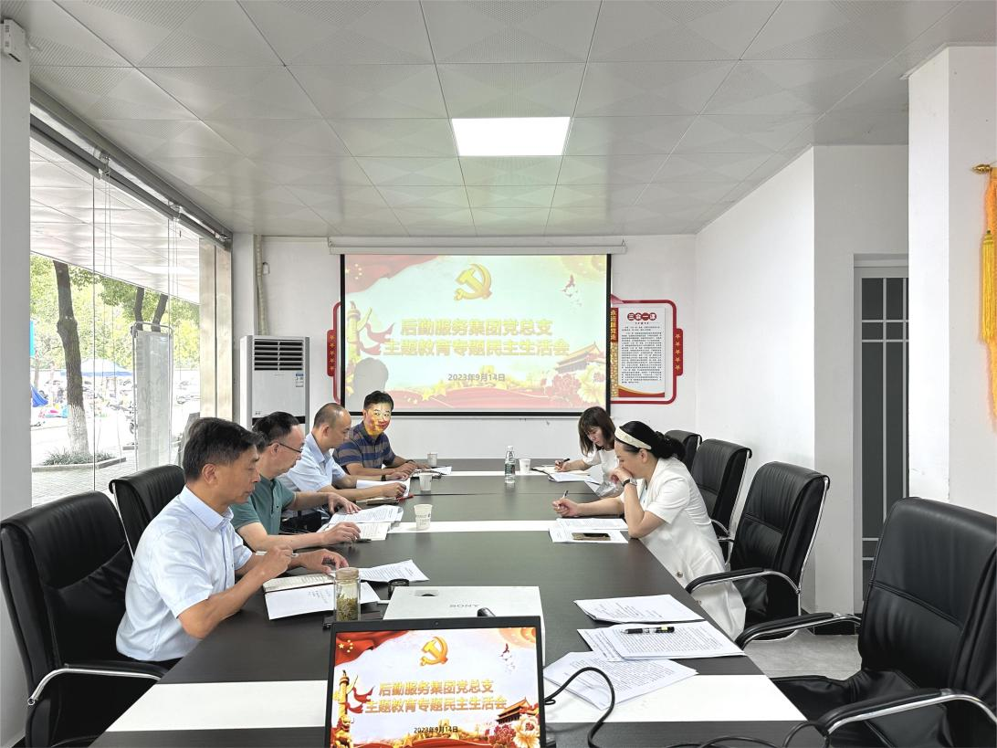 本网讯(通讯员 赵菁 文/图)9月14日上午,后勤服务集团党总支召开了学习贯彻习近平新时代中国特色社会主义思想主题教育专题民主生活会,全体委员参加,校党委常委李宜兵到会指导,党总支书记黄超平主持,校第三督查组成员现场督导。